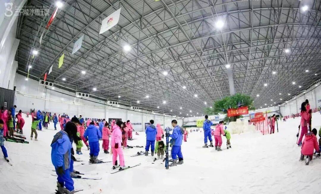 作为长沙市首家室内滑雪场,三只熊冰雪王国拥有1万m²的滑雪道,包含两条初级雪道(根据客流开放一条或两条),一条中级赛事雪道(暂未开放),雪道全长近180米,宽度75米,并且引进三部魔毯运输设备,运行平稳、安全可靠。
