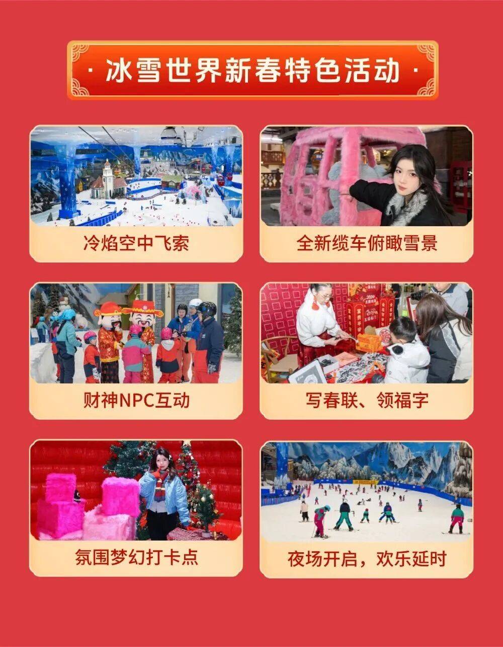 园区精心打造阿尔卑斯冰雪主题小镇,特色美陈营造新春氛围,随手一拍都是冰雪大片;可以乘坐粉色梦幻的雪国缆车、冷焰空中飞索,开启浪漫的高空穿梭之旅;象征祈福的敲钟仪式寄托着最虔诚的新年愿望。