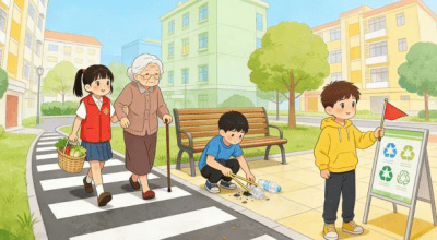 参与社区环境美化、文明宣传、邻里互助等活动,帮助孩子了解社区治理的意义,培养集体意识与奉献精神。